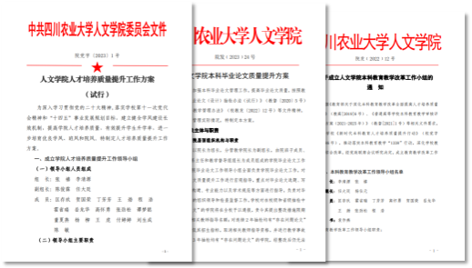 “十四五”期间,学院先后制定并实施了《人文学院人才培养质量提升工作方案》《人文学院本科毕业论文质量提升方案》《关于成立人文学院本科教育教学改革工作小组的通知》等系列制度文件,覆盖培养、管理、评价、毕业等环节,形成了“制度引领、流程规范、责任明确”的管理体制。学院先后制定并完善了汉语言文学、英语等4个专业和2个专业硕士点的人才培养方案。一系列制度举措的落地,为本科生和研究生人才培养提供了坚实的制度保障,有效提升了教育教学的科学性与规范性。