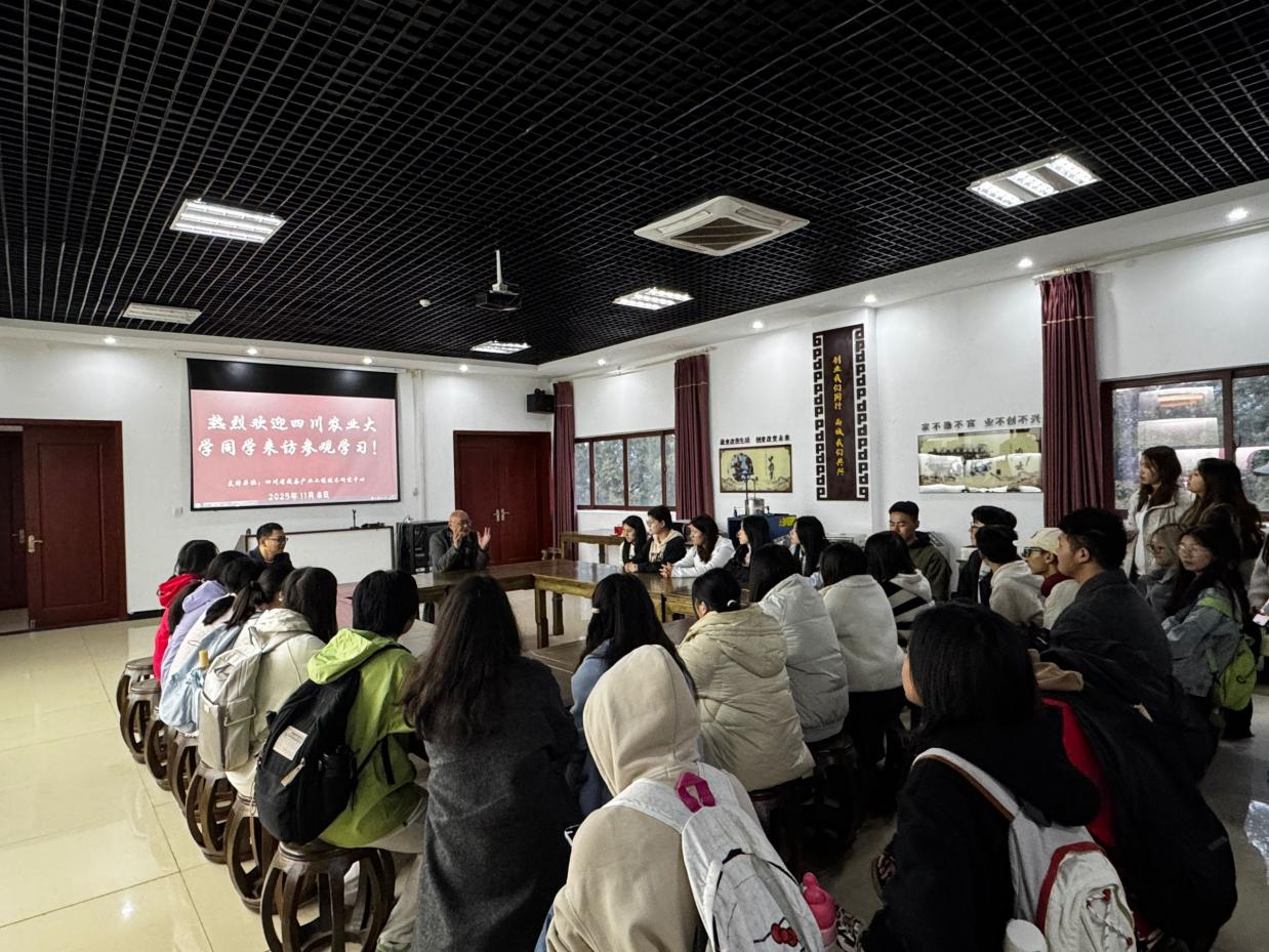 下午17时,采风团抵达中国藏茶村。在何春雷教授及企业负责人带领下,同学们参观了理化实验室、生产车间和藏茶博物馆。何教授系统讲解了藏茶的历史渊源、工艺特色与社会价值,强调藏茶在人民生活与民族团结中的重要地位。通过参观生产车间,同学们直观了解了从鲜叶到成茶的完整加工流程,深刻感受到非遗技艺的生命力。