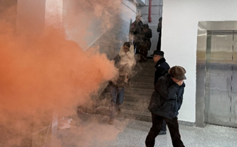 随后进行“模拟火灾现场应急疏散逃生”演练。在模拟烟雾环境下,师生们按照应急预案,遵循疏散原则,快速、冷静地沿指定疏散路线撤离至安全集合点。整个过程紧张有序,有效检验了人员在突发火情下的应急反应和疏散能力。