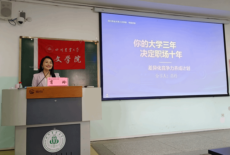 为助力学子应对AI时代就业新挑战,破解同质化竞争困境,科学规划大学生涯、锻造核心竞争力,3月31日,四川农业大学人文学院联合理学院,成功举办人文职业坊第102期教育行业联盟系列讲座第一讲。本次讲座特邀四川农业大学校友、优佳教育集团总经理肖玲老师返校主讲,以“你的大学三年,决定职场十年——差异化竞争力养成计划”为主题,为全校本科生带来一场兼具前沿视野与实践温度的职业成长盛宴。