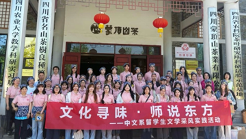 4月18日,人文学院中文系组织汉语言文学专业留学生赴雅安牛碾坪万亩观光茶园开展“文化寻味·师说东方”实践教学活动。本次活动由中文系主办、新世代国传工作室协办,中文系教师、留学生及国传工作室师生共五十余人参与。