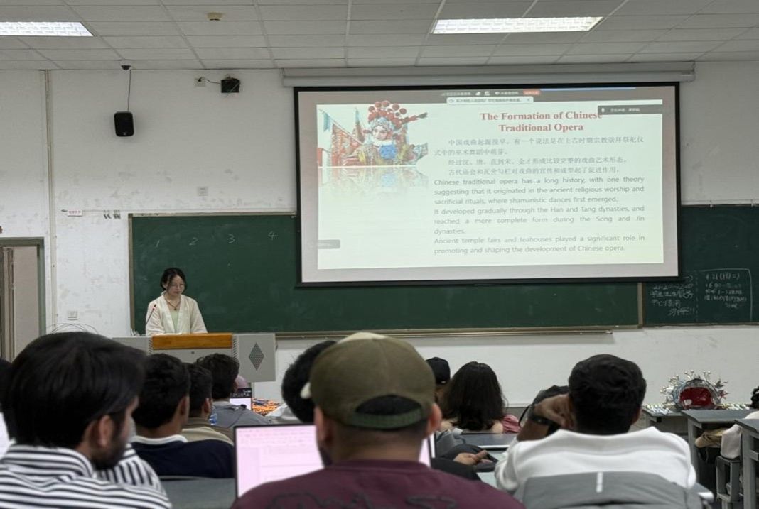 4月20日,由人文学院中文系主办、学生戏曲社协办的一场面向成都留学生的京剧交流活动圆满举行。本次活动由谭梦聪老师牵头组织,旨在通过讲解、表演、体验相结合的方式,向外国友人传播中华优秀传统文化。