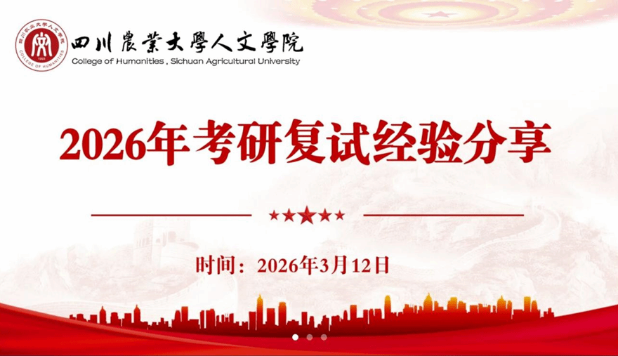 为帮助考研学子全面备战考研复试,明晰调剂备考思路,提升应试实战能力,2026年3月12日17:00,人文学院特举办线上考研复试与调剂经验分享会,邀请2025届多位成功上岸的学长学姐倾情分享,为备考学子送上干货满满的复试调剂攻略。