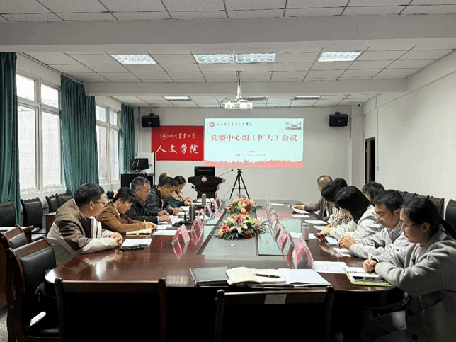 4月7日下午,人文学院在文法楼212会议室召开党委中心组(扩大)会议。会议集体学习了习近平总书记关于树立和践行正确政绩观的重要论述,传达了学校近期召开的党委中心组学习会议、学校宣传思想文化工作会议精神,并紧密结合学院近期主要工作进行了安排部署。学院领导班子、党委委员、纪委委员、师生党支部书记,各系(室、部)主任、专业负责人、雨城区人大代表参加了学习会。会议由学院党委书记张禧主持。