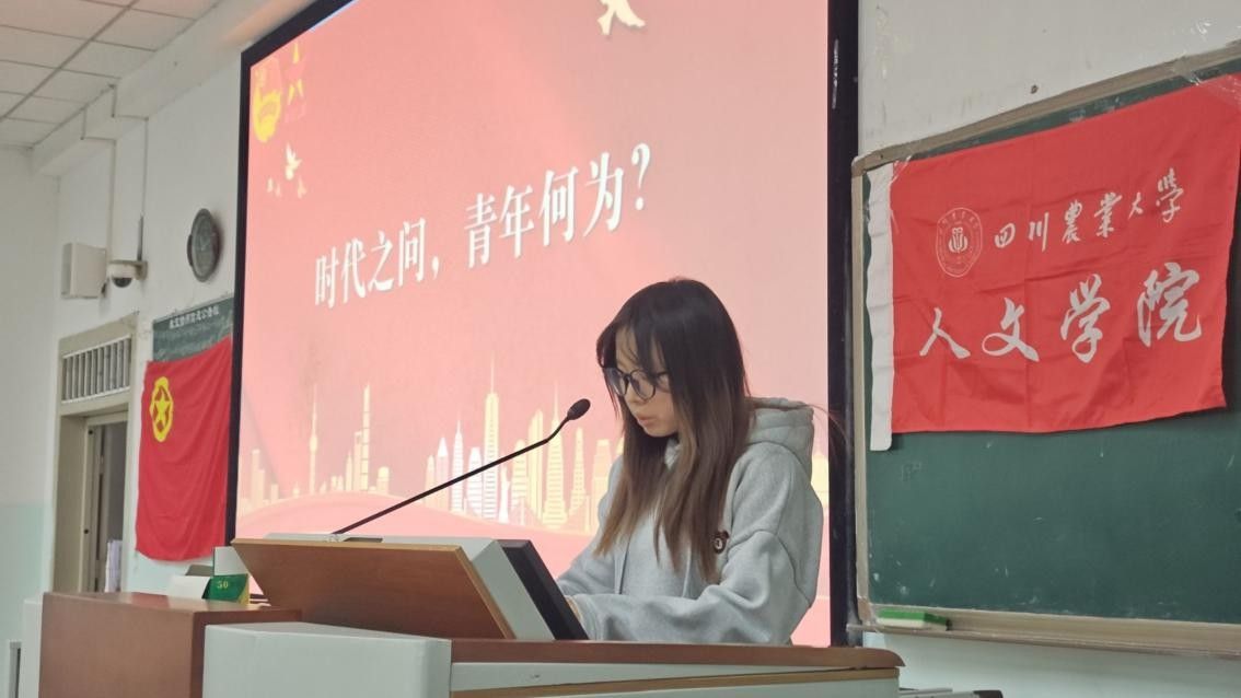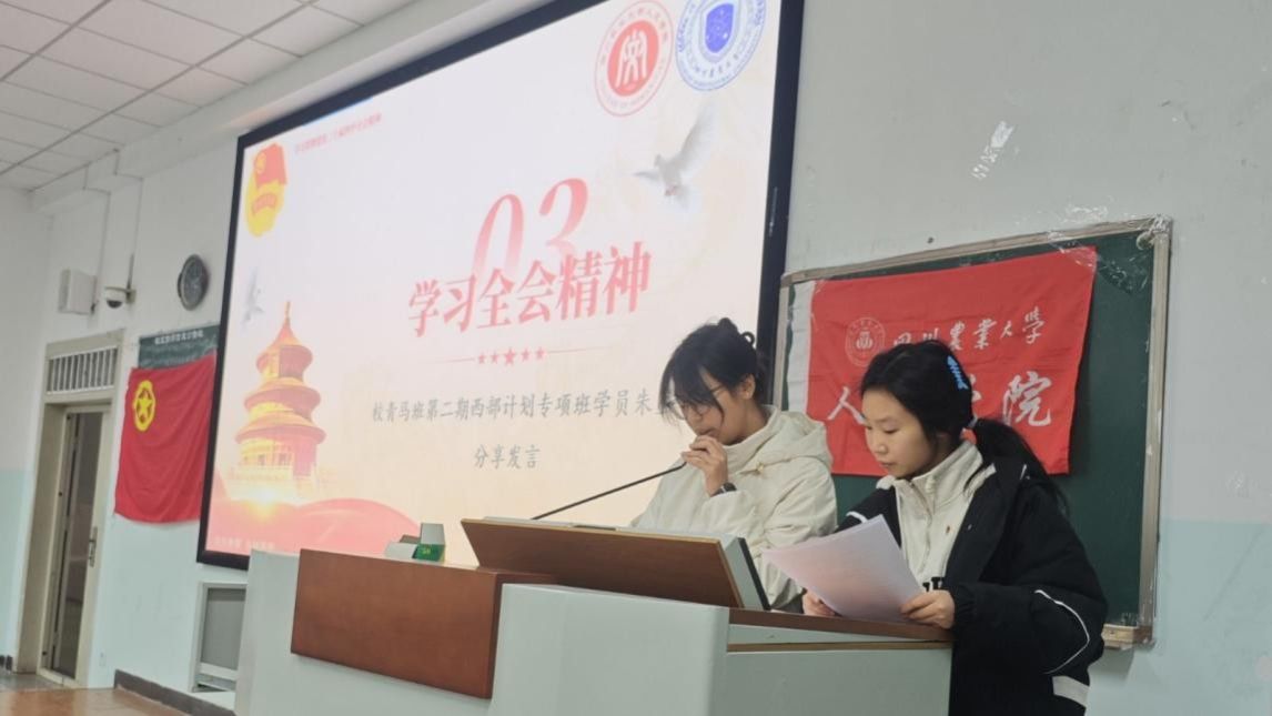 活动尾声,校青马班第二期西部计划专项班学员朱星月围绕“十五五”规划,从高质量发展、青年担当等维度进行宣讲,深入解读全会精神核心要义,鼓励同学们以见证者、参与者和建设者的姿态积极投身国家发展。随后,全体师生再次起立奏唱团歌,活动在激昂的旋律中圆满落幕。