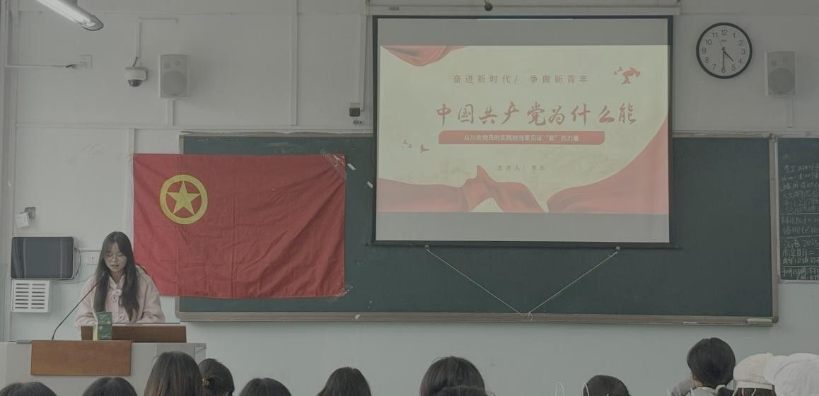 本期课程以“中国共产党为什么能”为主题,在讲解过程中,李乐分别从马克思主义理论铸魂、实践建功和青春接棒等方面为同学们进行讲解。过程中,李乐首先指出中国共产党为什么能归根到底是马克思主义行。接着在讲解理论铸魂这一环节时,李乐围绕“以人民为中心”这一主题,系统阐述了马克思主义唯物史观中“人民群众是历史的创造者”的核心观点,深入解读了“人民”理念在中国政治理论与实践中的重要地位。并且将“以人民为中心”的宏大理论具象化为一个个生动的实践案例,重点介绍了四川农业大学党员群体在不同岗位上的“能”与担当。