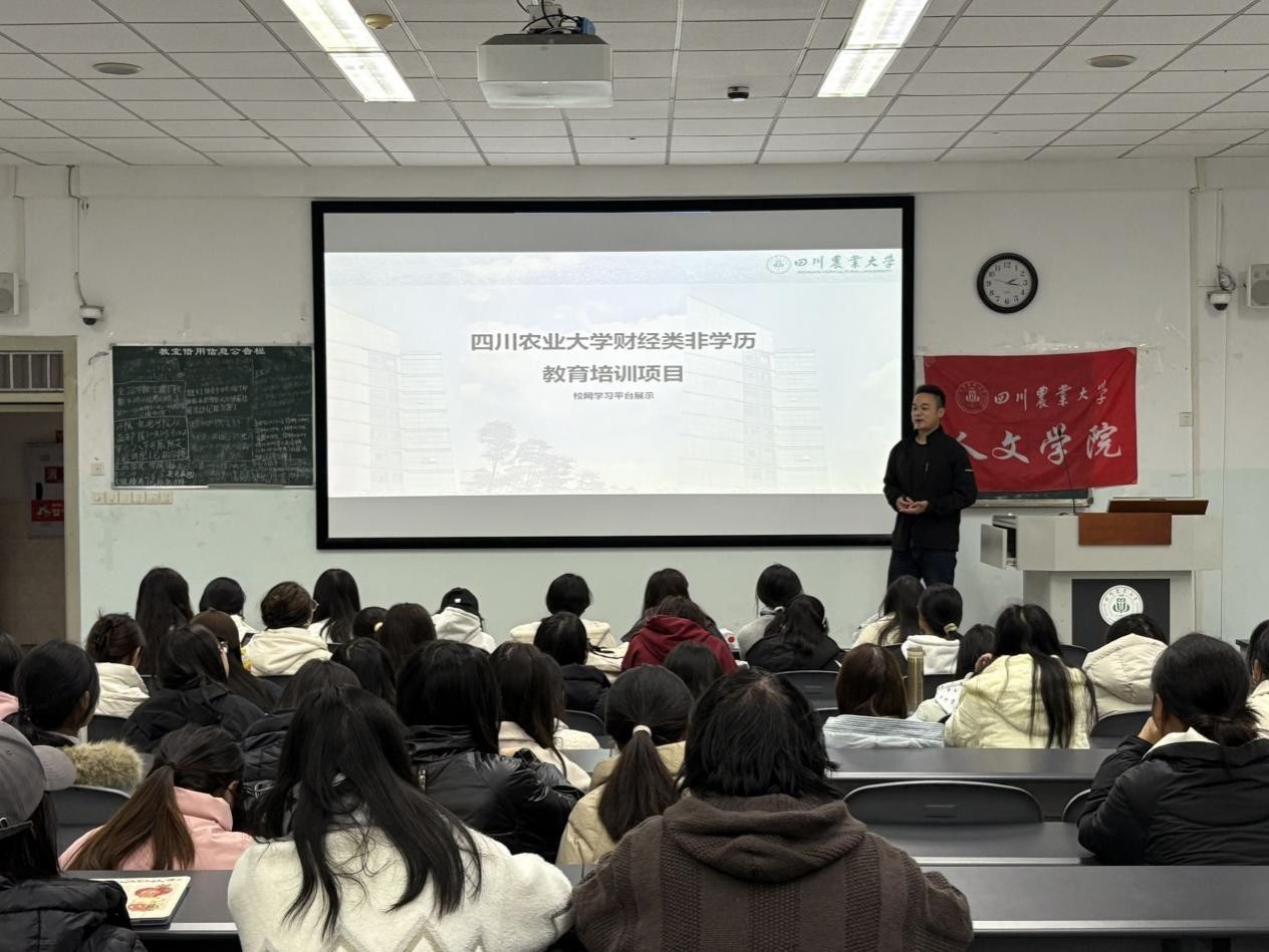 为帮助大学生明晰职业发展方向,提升复合型人才核心竞争力,11月28号下午四点,四川农业大学人文学院举办“搜寻川农斜杠青年——复合型职业发展规划”主题讲座。本次讲座特邀行业资深导师老师倾情分享,为在场学子搭建了与职业规划专家面对面交流的优质平台,人文学院百余名学生到场聆听。