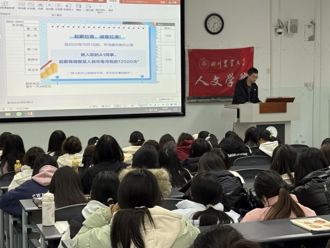 此次讲座的成功举办,不仅为川农学子提供了专业的职业规划指导,帮助大家理清了职业发展思路,更激发了同学们提升自身综合能力的积极性。未来,人文学院将持续聚焦学生成长成才需求,举办更多优质的就业指导活动,为同学们的职业发展保驾护航,助力更多川农学子成长为兼具专业素养与综合能力的复合型人才,在职场中实现自我价值。