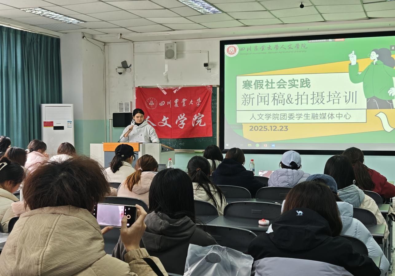 为扎实做好2026年寒假社会实践筹备工作,切实提升学生新闻稿撰写能力与安全防护意识,人文学院团委实践部于12月23日在1-412组织开展了寒假社会实践新闻稿培训会暨安全培训会,学院各年级社会实践团队代表及相关负责人全程参与。