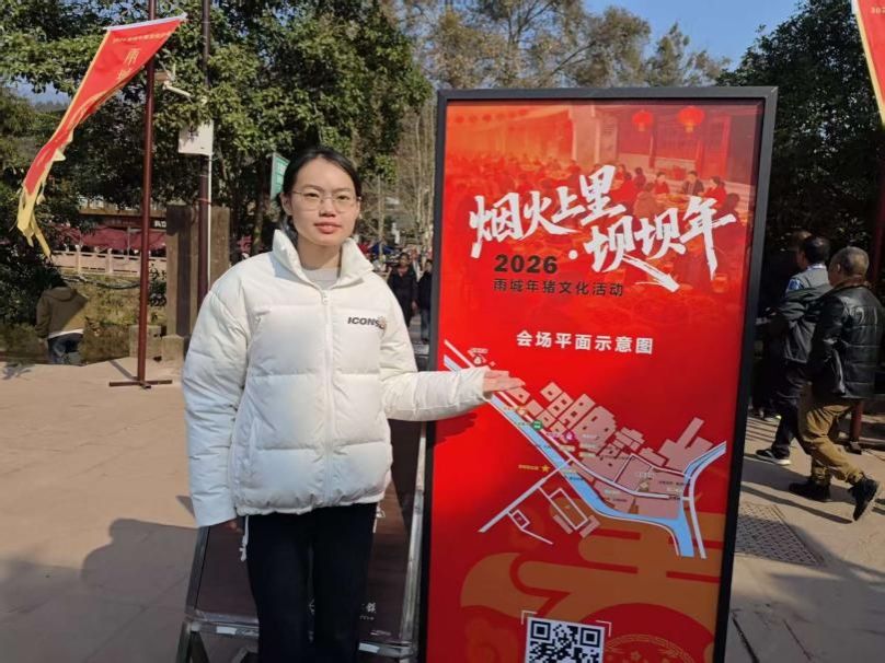 实践团首先参与观摩“2026雨城年猪文化活动”。该活动以购票入园形式开展,游客可入座观看专业团队表演的舞蹈及戏剧“抢亲”,并体验年猪宴。实践团成员认为,此类活动既生动展示地方民俗文化,又有效带动本地旅游产业发展。