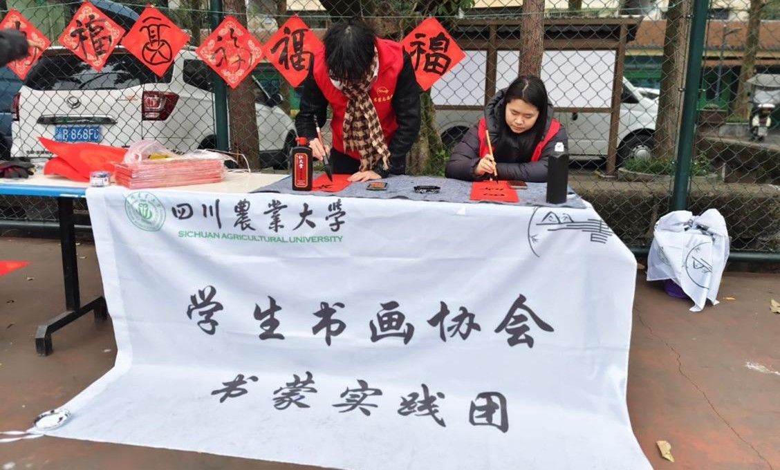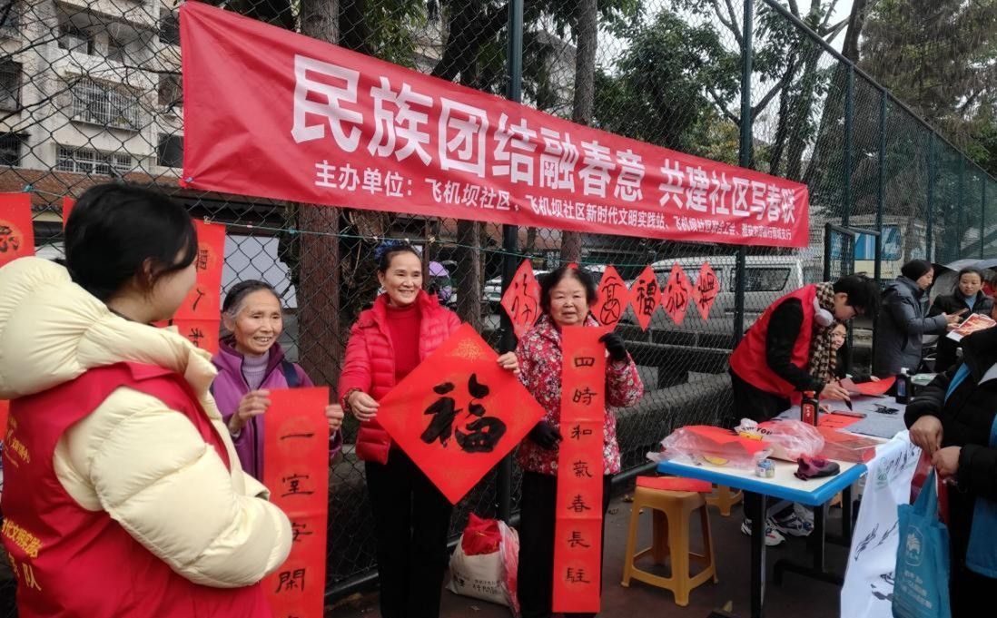 1月19日,人文学院书蒙实践团第八队前往雅安市飞机坝社区,在社区工作人员配合下开展“民族团结融春意,共建社区写春联”主题活动。本次活动主要采取现场书写春联的形式,为社区居民送上新春祝福。