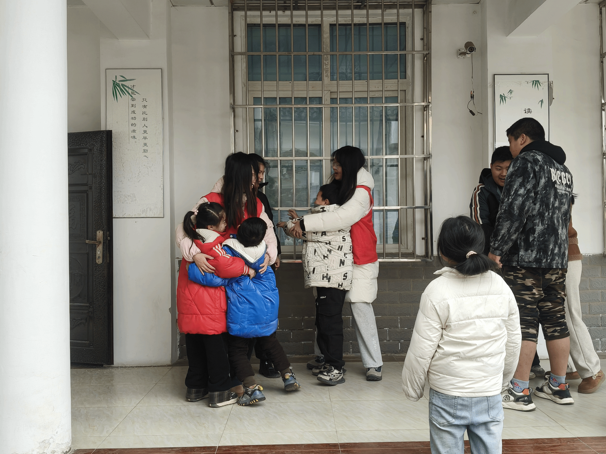 活动当日上午,志愿者率先组织开展“爱的抱抱”互动活动,在温柔鼓励与引导下,孩子们主动张开双臂,与身边小伙伴亲密相拥。随后开展的“桃花朵朵开”趣味游戏,为孩子们营造了包容友爱的互动氛围,在相拥与协作中,让每一位孩子都融入温暖的集体之中。