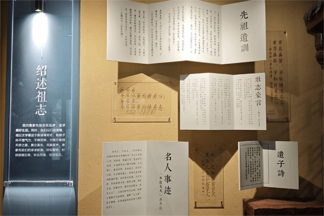 实践首站,队员们来到古镇核心文化展示区。通过图文资料,团队系统了解了客家人“客从何来”的迁徙史诗。客家人祖先原居黄河流域,历经数次南迁,最终在闽、粤、赣交界区域形成一支独特而稳定的汉族民系。为区别于当地原居民,故称“客家”。这段充满艰辛与智慧的迁徙史,展现了客家人坚韧不拔、开拓进取的民族品格,也为洛带古镇深厚的客家文化底蕴奠定了根基。