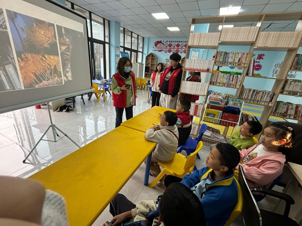 随后,志愿者们依次将小朋友引导入座,开始为小朋友们讲述传统糖画技艺的相关知识。在教学过程中,他们面对孩子们在教学过程中遇到的种种难题,始终保持耐心细致,一一进行解答。同时,积极引导孩子们独立思考问题,巧妙地帮助他们理解糖画的内涵与意义。通过这种行之有效的方式,志愿者们不仅成功解决了孩子们心中的疑惑,更为重要的是,极大地激发了他们对国学的热爱和传统手艺的兴趣。