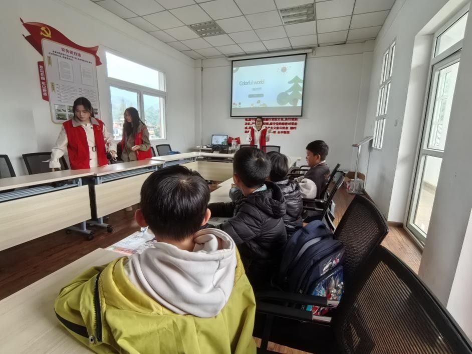 活动伊始,志愿者们以亲切的互动打破陌生感,快速营造出轻松愉悦的语言氛围,让孩子们在欢声笑语中放下拘谨,主动参与到交流中。志愿者赵婷通过趣味PPT与孩子们进行英语互动,让孩子们在欢笑声中学习到各种颜色的英语单词。