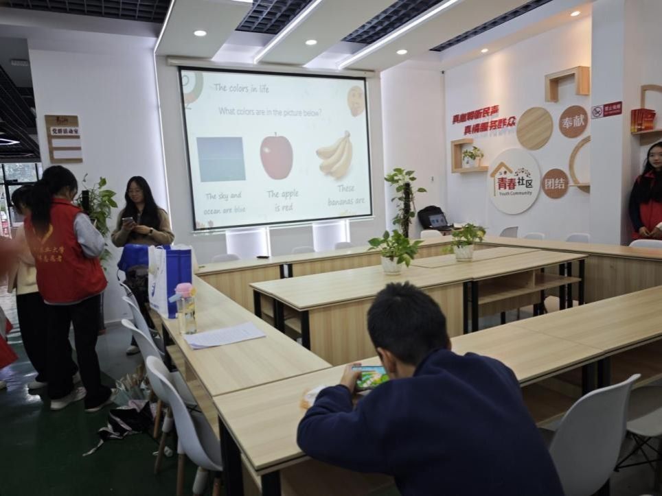 周日的英语角活动在一片欢声笑语中圆满落下帷幕。这次活动不仅为孩子们带来了丰硕的知识收获,更在他们的心灵深处种下了希望的种子,为他们的未来点燃了璀璨的光芒。志愿者张玉彤表示:“此次社区志愿服务让我们有机会将所学知识转化为实际行动,看到小朋友们在活动中收获知识和快乐,我们也感受到了志愿服务的意义。未来,我们会继续参与此类活动,用青春力量为社区发展贡献一份力量。”