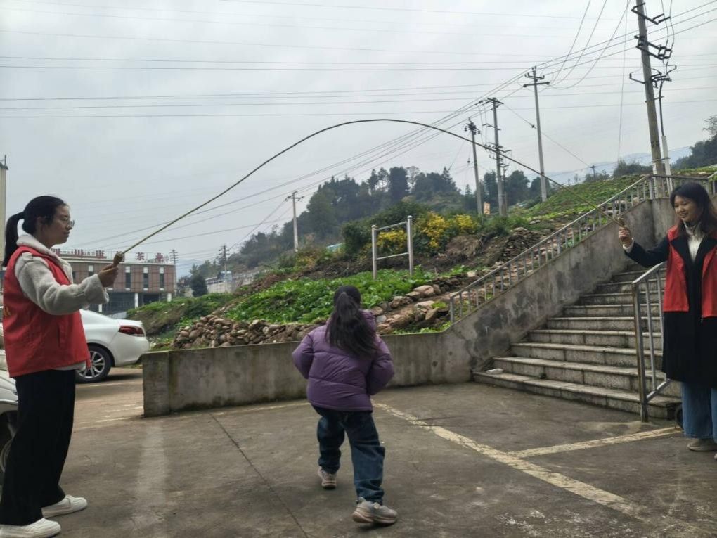 作业完成后,活动转入充满活力的运动环节。活动中,志愿者提前检查跳绳安全性,先示范正确跳法,然后在绳旁加油鼓劲,偶尔加入队伍与孩子一同跳跃,跳绳击打地面的节奏声与欢笑声在社区广场回荡。羽毛球运动中,志愿者耐心教孩子握拍、挥拍技巧,一对一陪练,从基础颠球到简单对打,逐步提升孩子的运动能力。运动过程中,志愿者时刻关注孩子安全,确保每个孩子都能在运动中享受快乐、增强体质。