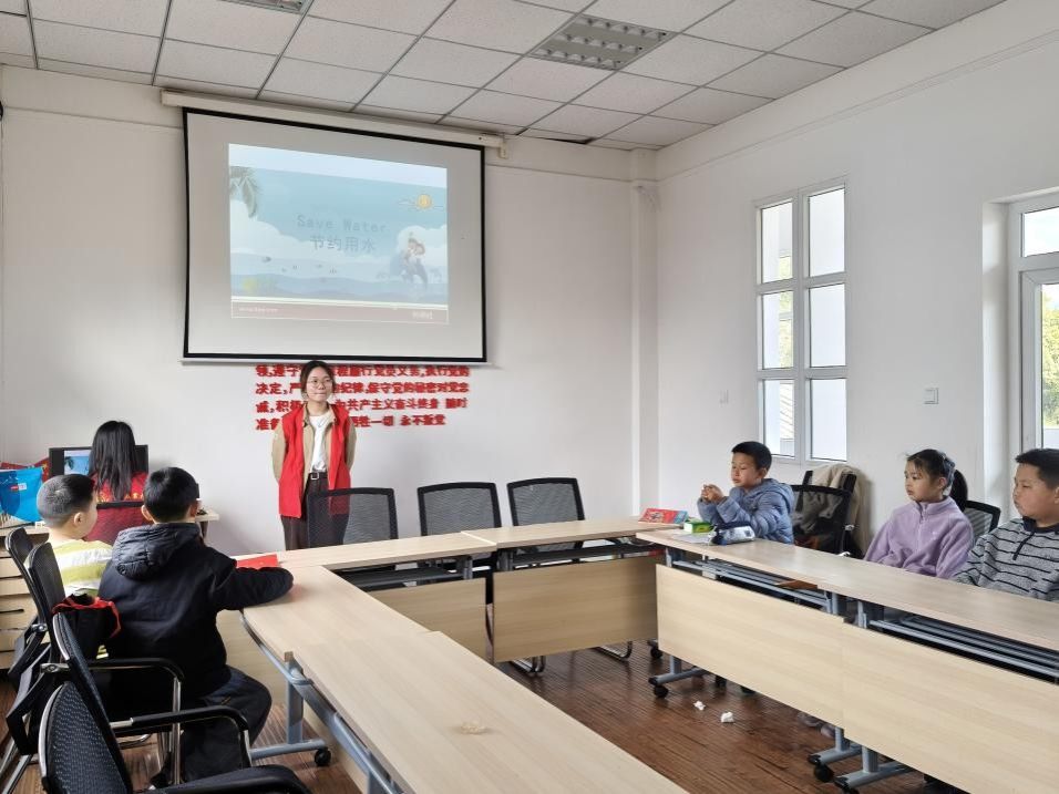 活动中,志愿者以中英双字PPT为核心教学载体,围绕世界水日主题展开趣味教学。PPT搭配生动的节水主题插图,既向孩子们普及了水资源现状、日常节水小妙招等科普知识,又同步讲解对应的节水英文词汇与实用短句。志愿者耐心带领孩子们认读、跟读,通过互动提问引导孩子主动开口,让孩子们在轻松的氛围中提升英语能力,同时树立起节水护水、珍爱资源的环保意识。