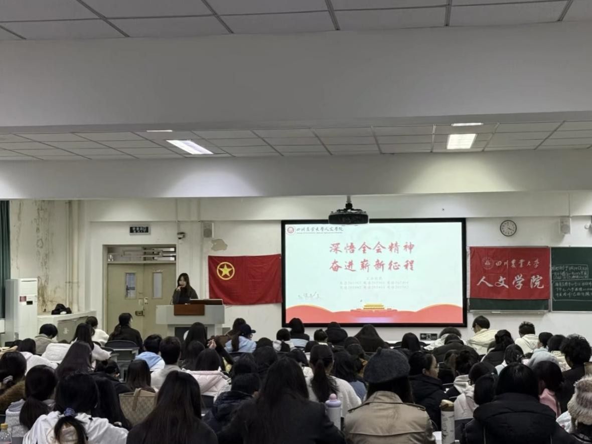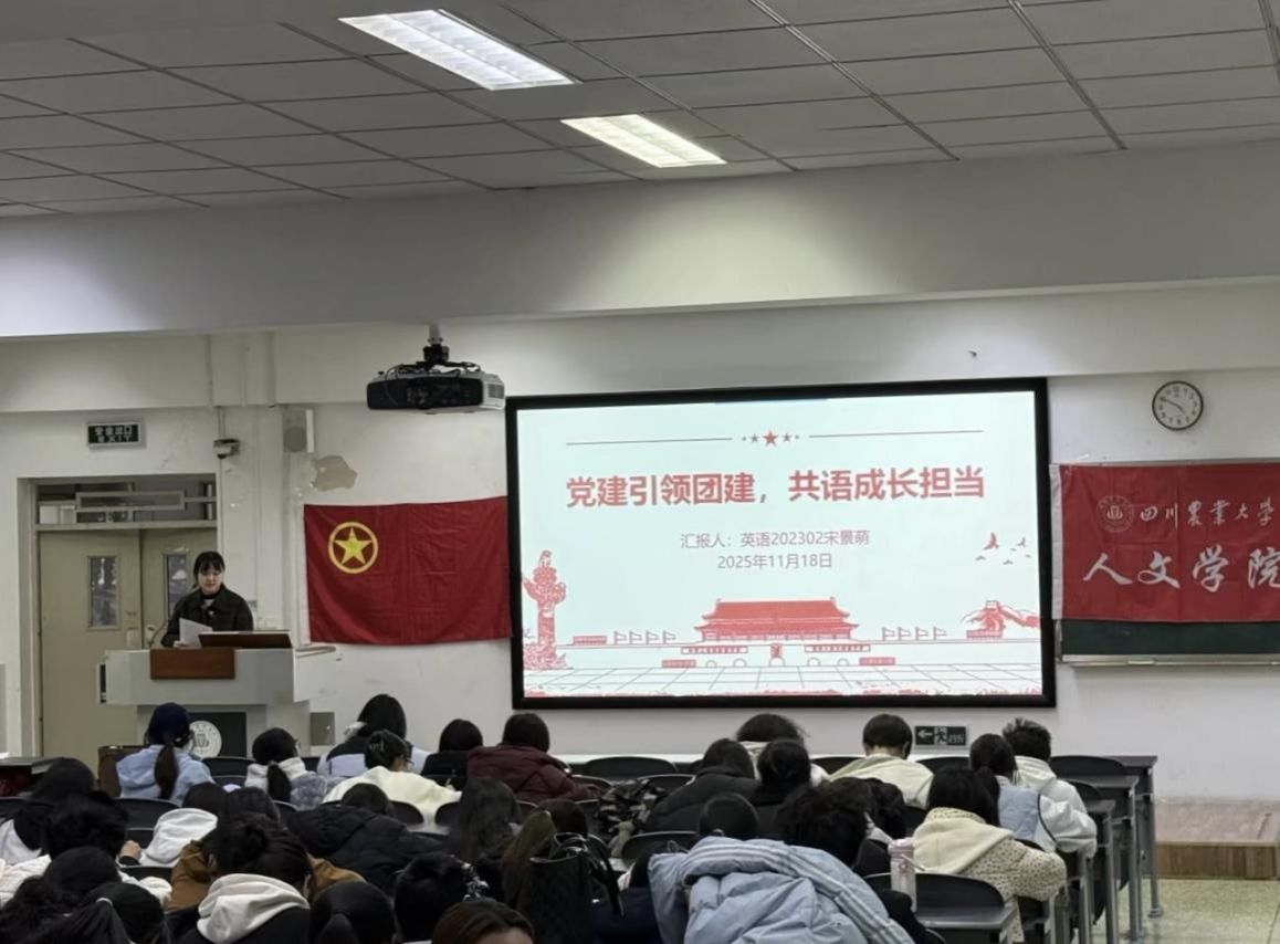 为深入学习贯彻习近平总书记在党的二十届四中全会上的重要讲话精神,引导广大青年团员坚定理想信念、勇担时代使命,11月18日16:20,英语202301、英语202302、英语202304、英语202402、英语202404、英语202502团支部联合举办“深悟全会精神 奋进崭新征程”主题班团活动。活动在教学楼10-B203教室顺利开展,各支部团员积极参与。
