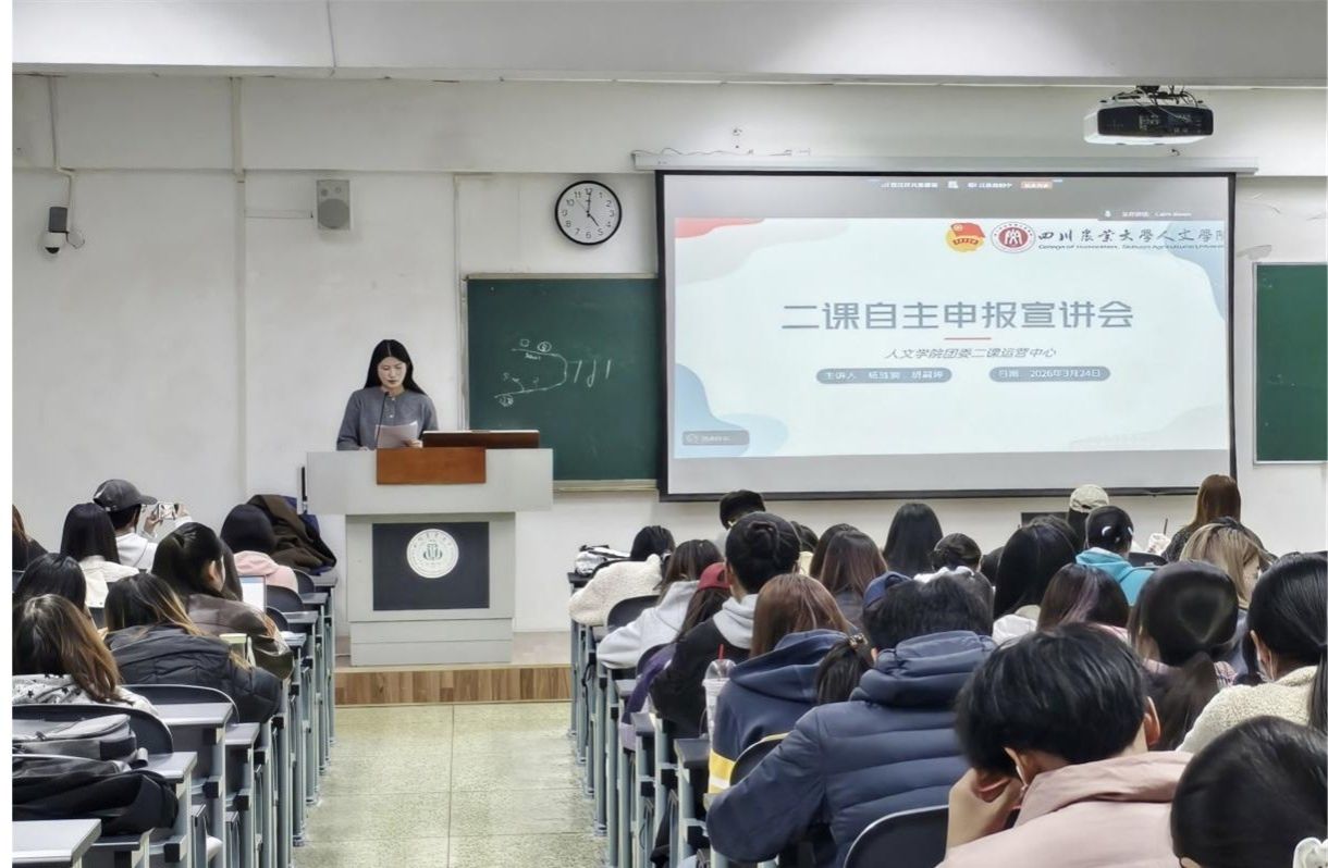 为帮助同学们明晰二课自主申报流程,解决申报过程中的各类疑问,人文学院二课自主申报宣讲会于3月24日下午在10教B201、B202开展。由团委二课运营中心杨涟漪进行讲解,众多同学参与了此次的活动,了解自主申报相关内容。