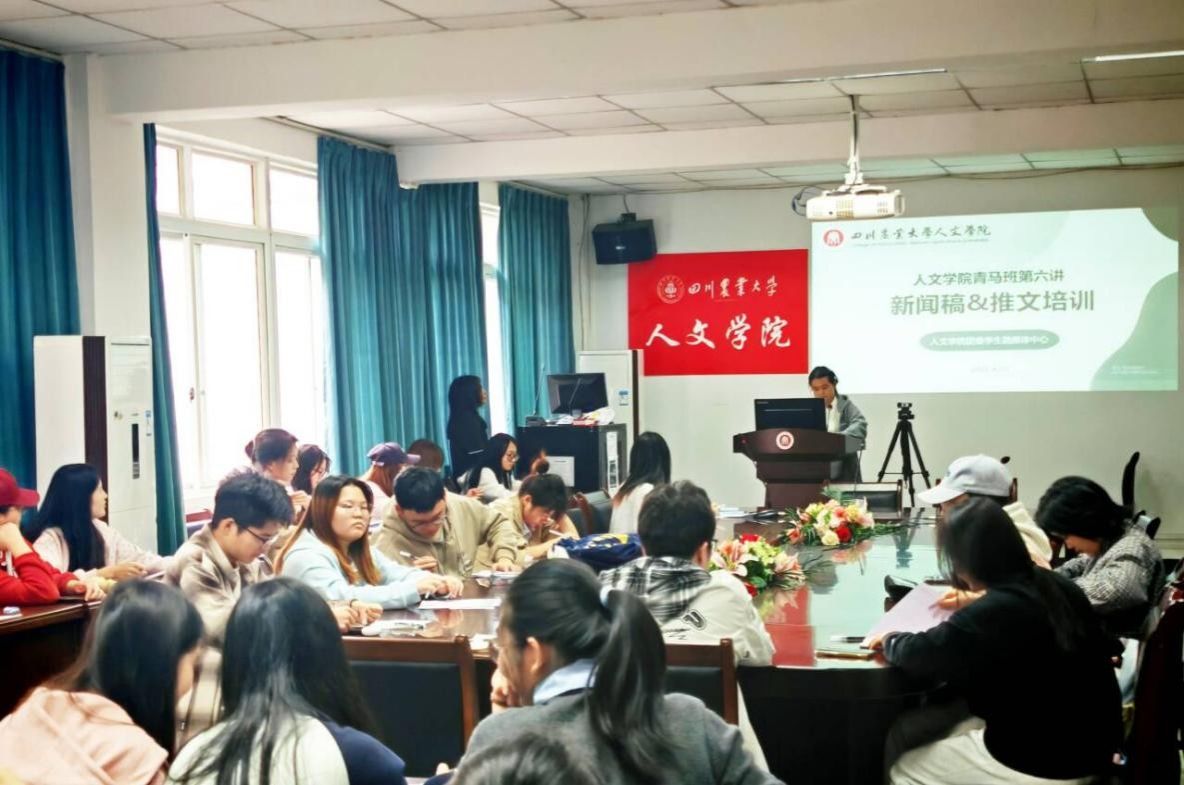 为提升青马班学员媒体宣传素养与综合实践能力,4月10日13:00,人文学院第九期青马班第六讲于文法楼212顺利开讲。本次专题培训聚焦新闻稿与推文创作,由学院学生融媒体中心部门负责人胡雪莲、周海洋主讲,全体青马班学员参与学习。