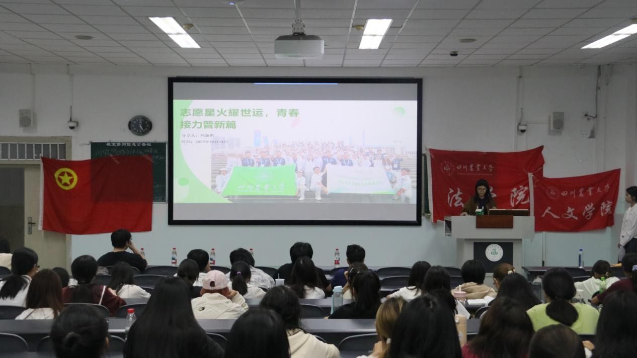 志愿服务是社会文明进步的重要标志。世运会志愿者刘加琪向同学们分享了担任世运会志愿者期间的趣事和收获,鼓励同学们积极投身社会实践,在实践过程中实现个人价值与社会价值。