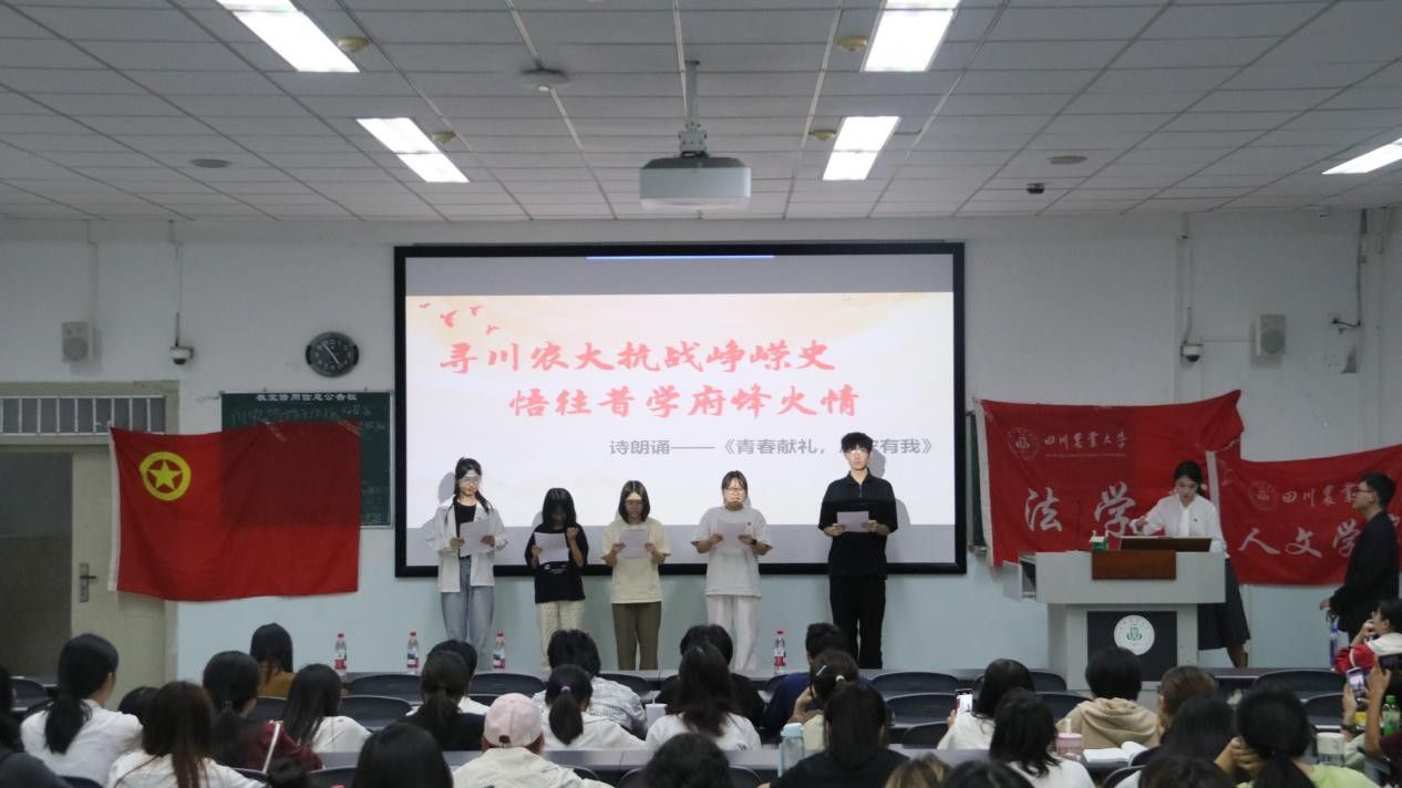 寻川农大抗战峥嵘史,悟往昔学府烽火情。学生们用洪亮圆润的嗓音现场朗诵《青春献礼,强农有我》,在一句句诗句里感悟校史,在一句句诗句里立志传承川农大精神。