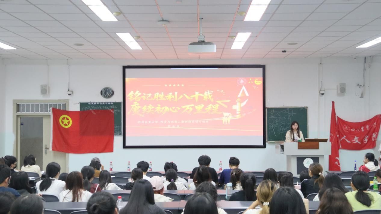 为深切缅怀革命先烈,传承和弘扬伟大抗战精神,10月14日16:20,人文学院、法学院联合两个学院六个团支部于十教A103共同举办了“纪念中国人民抗日战争暨世界反法西斯战争胜利80周年”示范性班团活动。