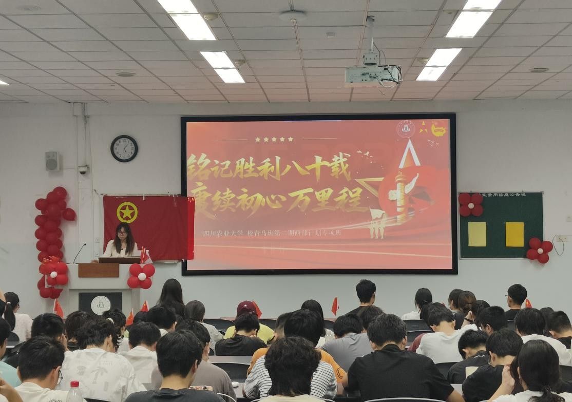 在“百廿校史砺初心,青春建功新时代”环节中,自制视频《川农大发展史与专业发展史》带领同学们回顾学校百年历程,感悟“川农大精神”的深厚底蕴。校史知识趣味问答环节将气氛推向高潮,同学们踊跃参与,在互动中深化对校史文化的认同。之后,“知行合一强农路,青春聚力乡村兴”环节聚焦暑期社会实践成果,优秀团队代表分享助农经历,从教育扶贫到农业技术推广,展现了青年学子积极投身乡村振兴的实践智慧与担当精神。