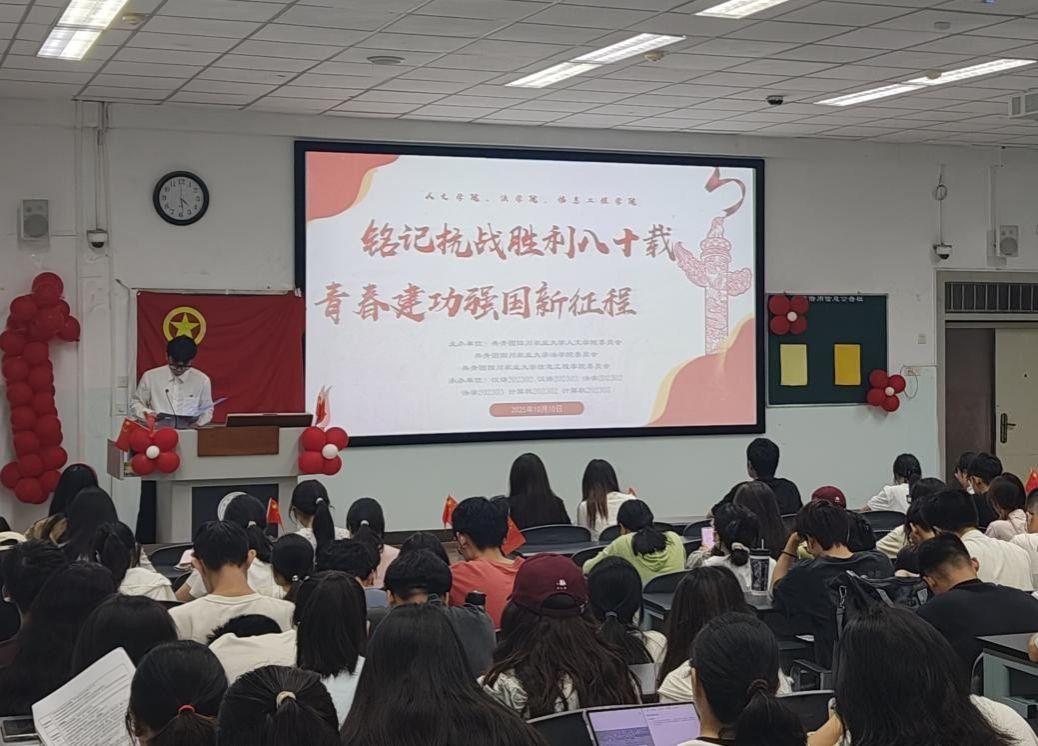 为引导青年学子重温抗战历史,深切缅怀革命先烈的牺牲与奉献,深刻感悟伟大抗战精神的核心内涵,筑牢爱国主义思想根基。10月10日,汉语202302、汉语202303、法学202302、法学202303、计算机202302、计算机202305团支部于10-A102联合举办了以“铭记抗战胜利八十载,青春建功强国新征程”为主题的九、十月班团活动。