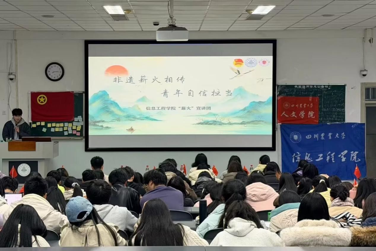 宣讲润人心,以榜样之力激励广大学子。信息工程学院“薪火”宣讲团成员李锦轩进行非遗传承宣讲,呼吁同学们关注非遗传承,厚植家国情怀。研支团成员秦璇双分享支教一线经历,鼓励同学们走近支教,了解支教。