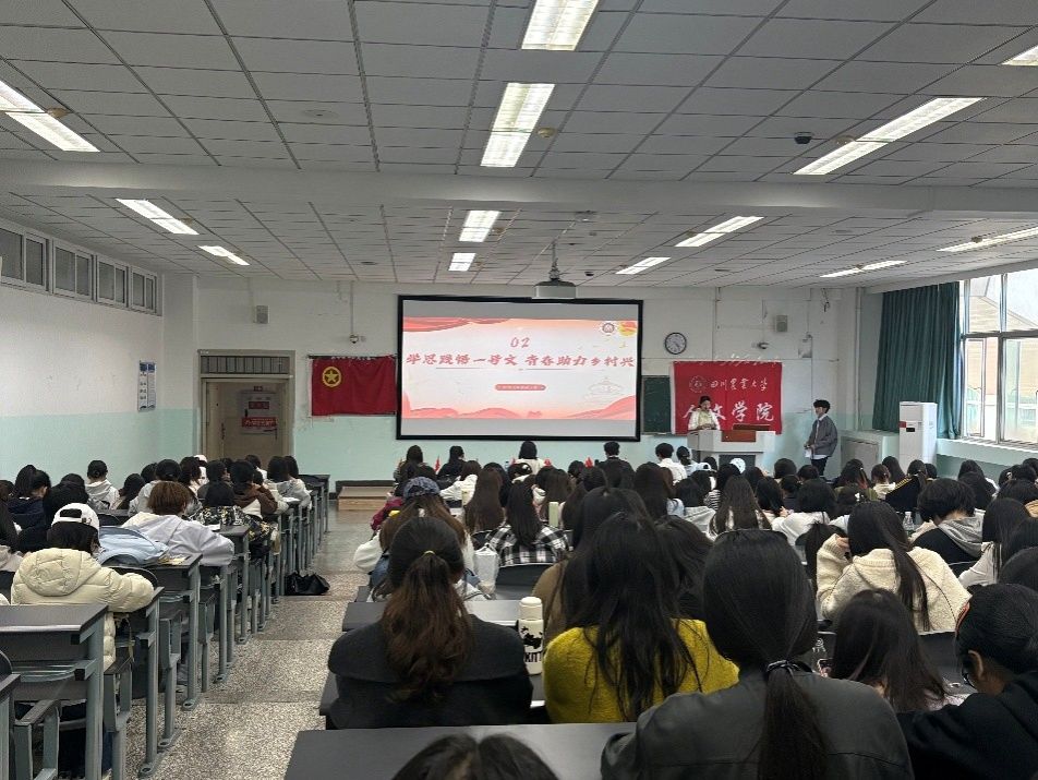 班级还相继开展“三月春风学雷锋 志愿奉献绽青春”“四月书香润青春 阅读逐梦正当时”“社会实践返家乡 青春归来话成长”等系列活动。通过志愿服务分享、经典诵读、实践经历交流等形式,引导团员传承雷锋精神,在墨香中汲取文化养分,在基层实践中增长才干。活动最后,张凤琳老师对本次系列活动进行点评,充分肯定班级在理论学习、实践育人、文化传承等方面的成效,寄语同学们以百廿校庆为新起点,传承川农大精神,以青春之我、奋斗之我为学校华诞献礼,为强国建设贡献青春力量。
